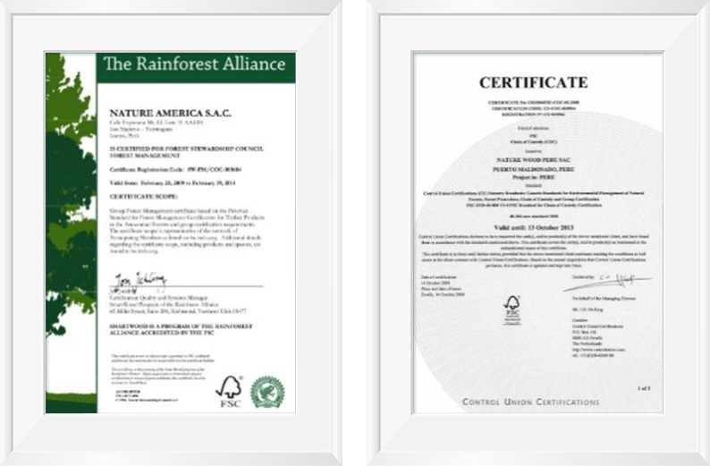 大自然家居與FSC、雨林聯盟、SGS、WWF等國際認證及環保組織有良好的合作 關系,秘魯林地已獲得FSC-FM認證。 秘魯林業項目擁有一支經驗豐富的團隊, 按照 FSC 標準管理林地,并有能力協助當地社區或合作伙伴進行森林認證。